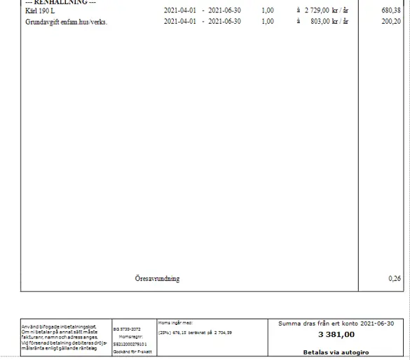 Med autogiro dras avgiften automatiskt från ditt bankkonto. Inga extra avgifter tillkommer.
