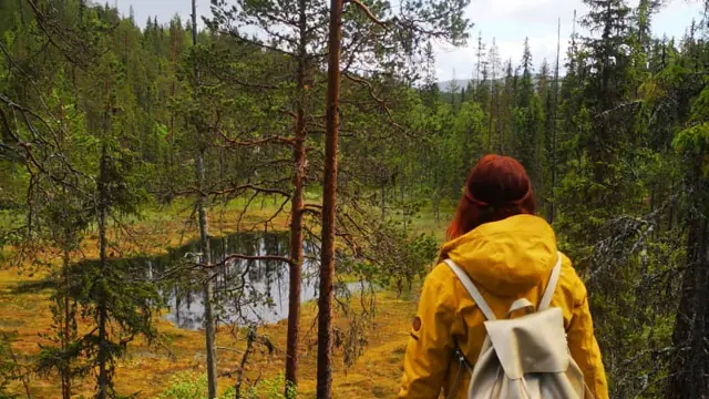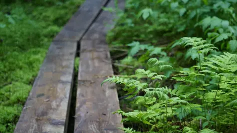 Från de torra, tallbevuxna höjderna går en vandringsled ner till den lummiga myrbädden på kanjonens botten. Temperaturskillnaden mellan toppen och botten är kännbar, liksom den förändrade atmosfären. På botten är det tystare, men ändå är själva bergens närvaro mer påtaglig.