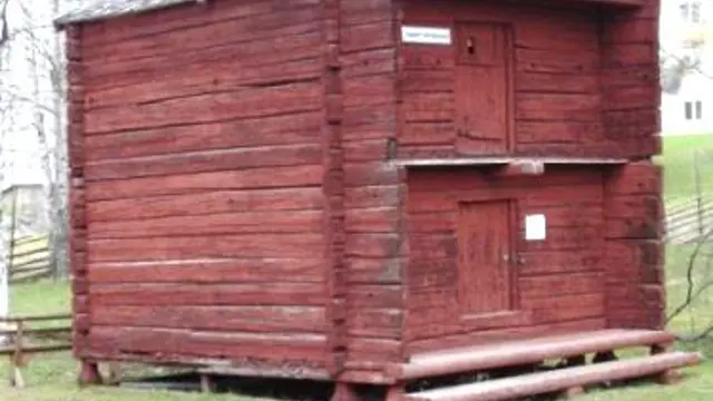 Rundlogen uppfördes ursprungligen i Älgsjö omkring år 1900 och flyttades till hembygdsgården 1964. I dag inhyser den en vagn och en färdmedelsutställning