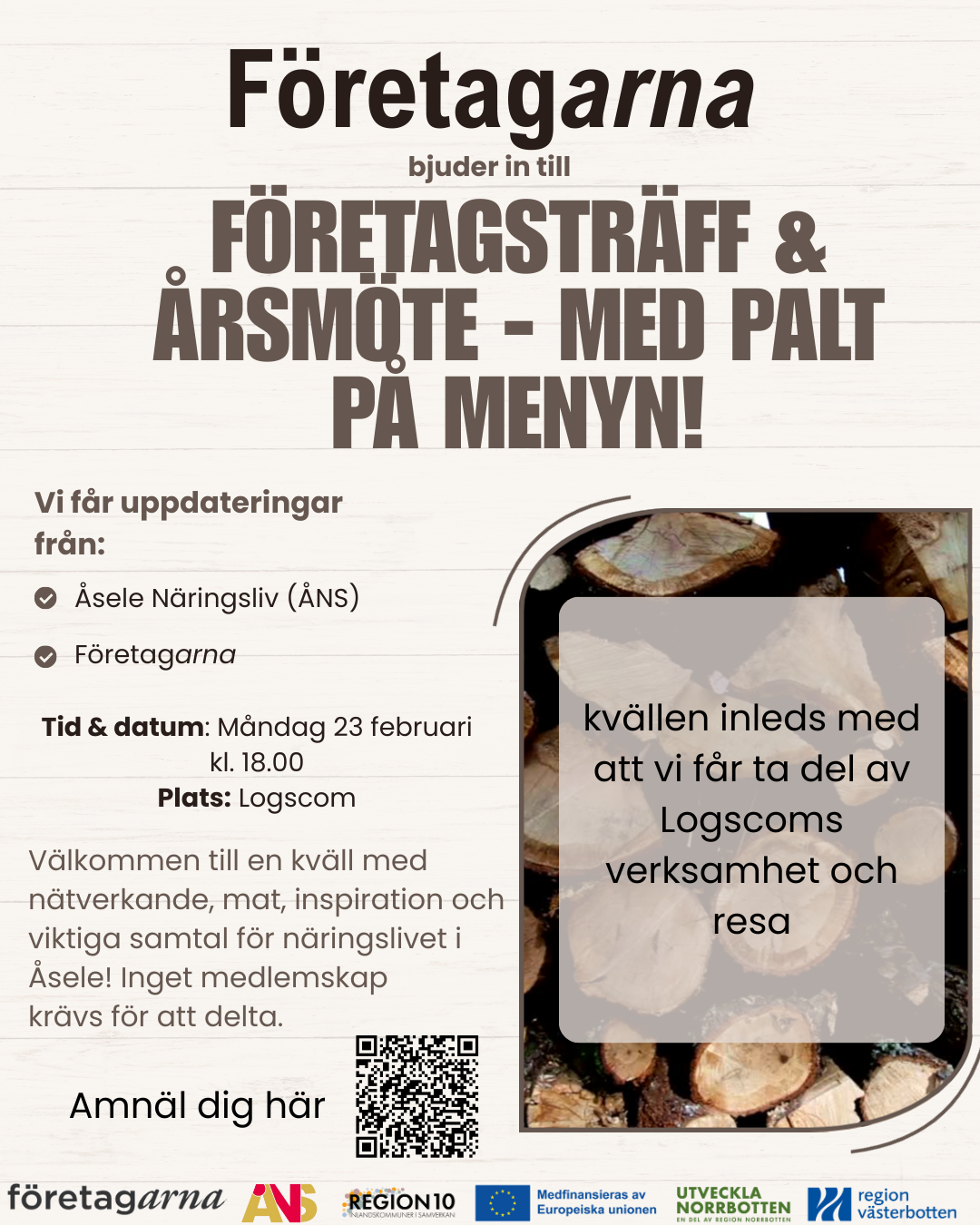 Måndag 23 februari bjuder vi in till en inspirerande företagsträff hos Logscom i Åsele!